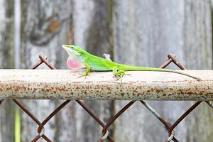 Green anole's bright red and pink dewlap —Lens: Canon RF24-240mm—ISO: 100; @ 113mm; f/6.3 at 1/30sec.