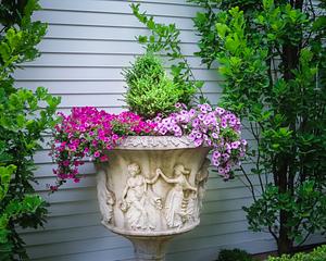 Cottage Garden White Urn with Pink Flowers (Camera: Canon Powershot SX740 HS 24-960mm). Also visit Gardeners Know all the Dirt at https://bit.ly/KnowTheDirt – Topics covering Botany, Propagation techniques, Insects and their purpose, Plant pathology, Pesticides and the environment, Organic gardening, Climate Change & Sustainable Gardening.