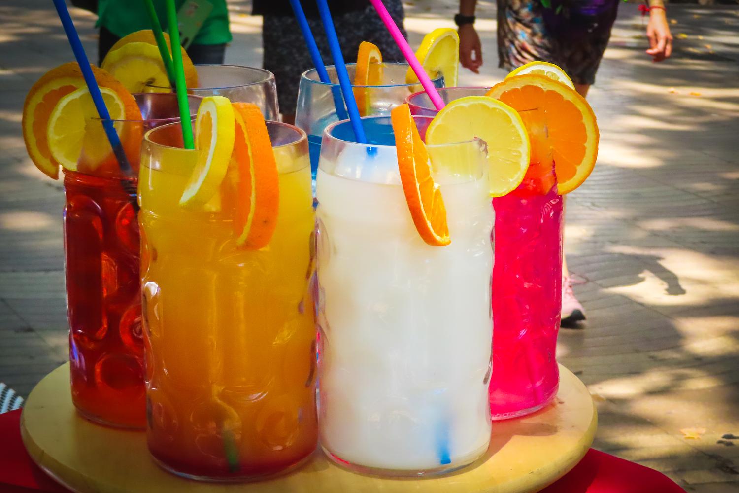 Las Ramblas in Barcelona Colored Summer Drinks